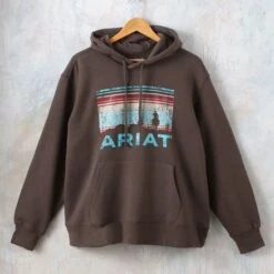 Are you ready to ride off into the sunset like every good ole western? The Ariat REAL Banyan Bark Graphic Logo Plus Hoodie has the perfect feel for you and all your western dreams.