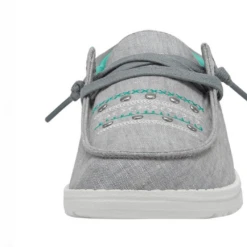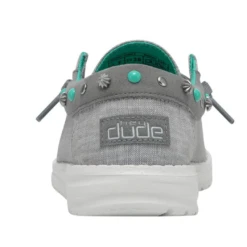 Saddle up with the Hey Dude Wendy Annex Rodeo collection,! This fun design puts a western twist on the every so popular and most comfortable Wendy shoe! A soft cotton canvas with hand-stitched and studded features throughout. Finished off with a suede collar, an ultralight outsole and elastic laces. Â