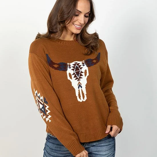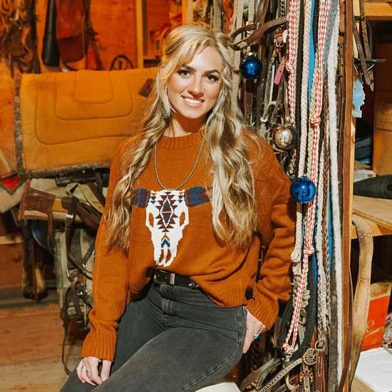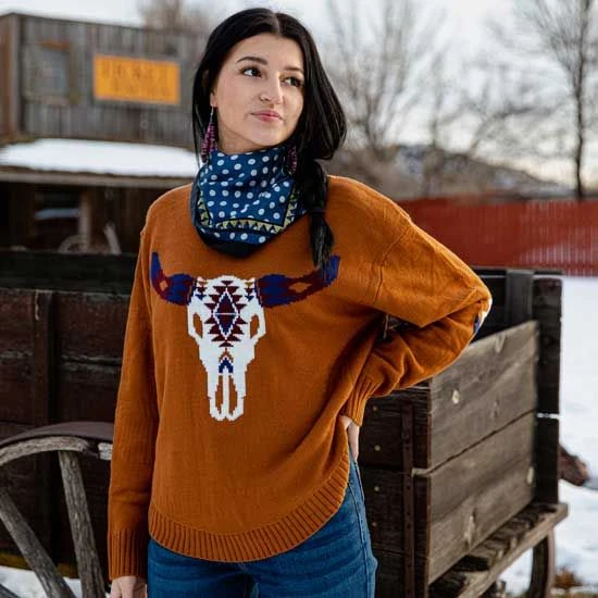 A retro look with a modern twist the Wrangler Retro Rust Aztec Steerhead Sweater is the perfect sweater addition to your winter closet!